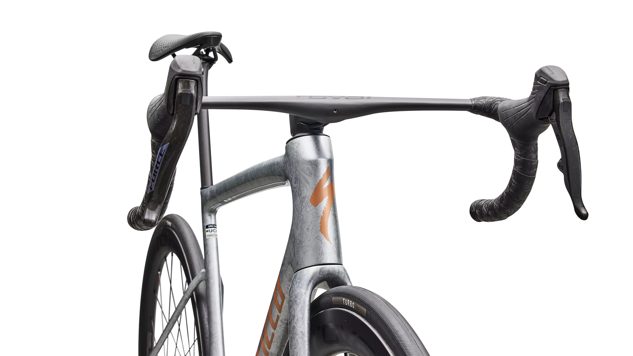 Désormais, le Tarmac SL8 Expert est équipé du nouveau groupe Force AXS de SRAM pour un poids réduit, un freinage sans effort et des changements de vitesse plus rapides et plus précis.