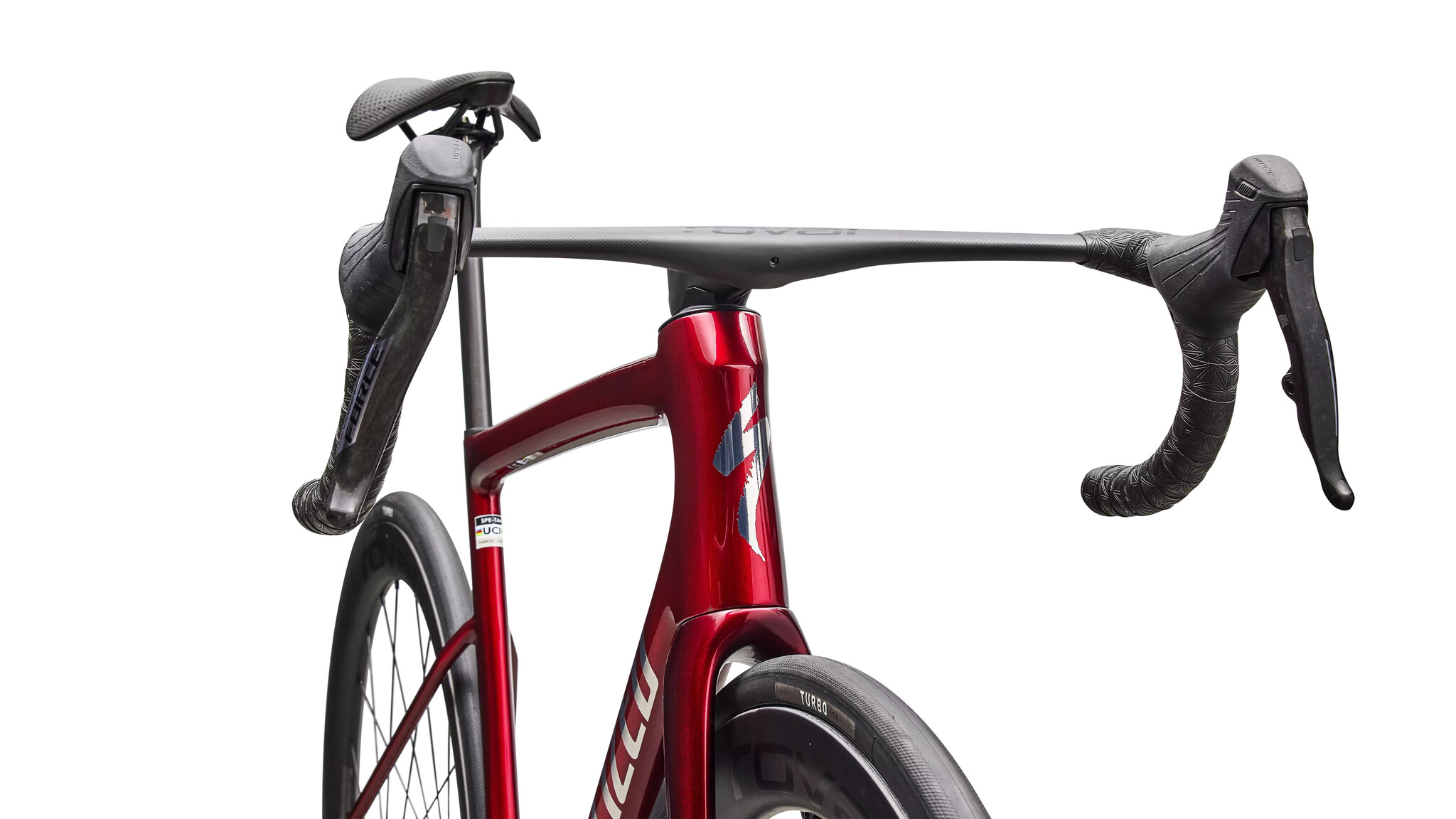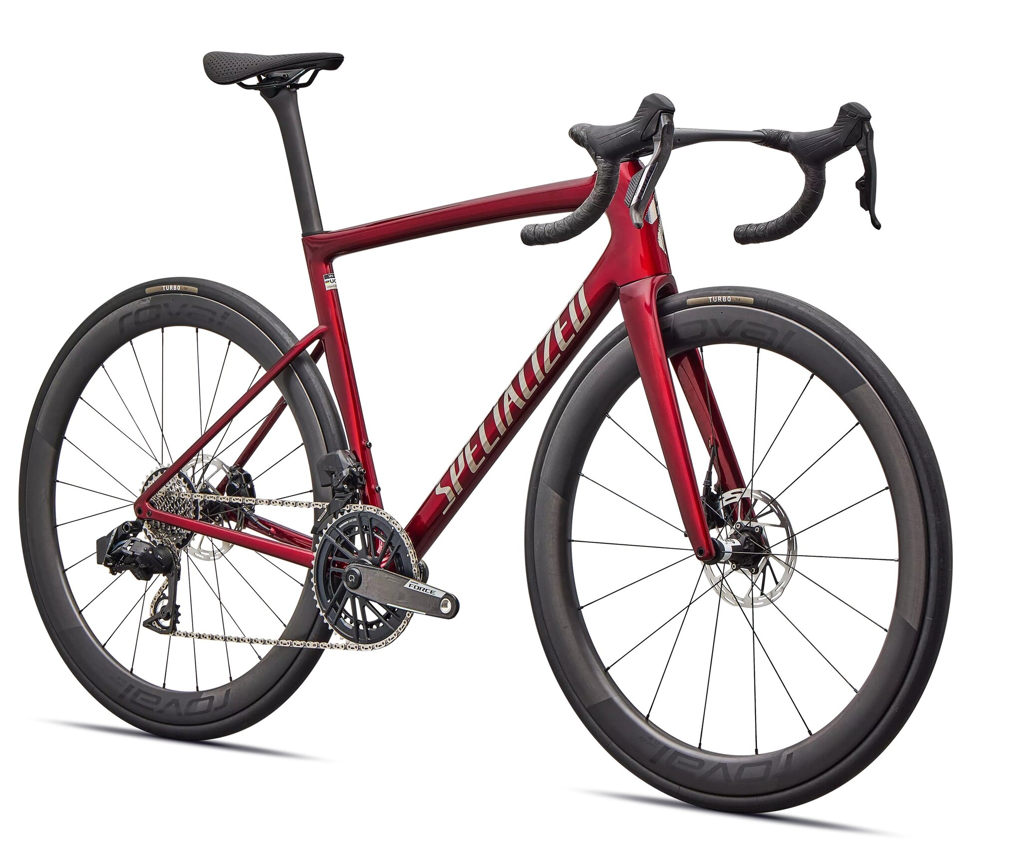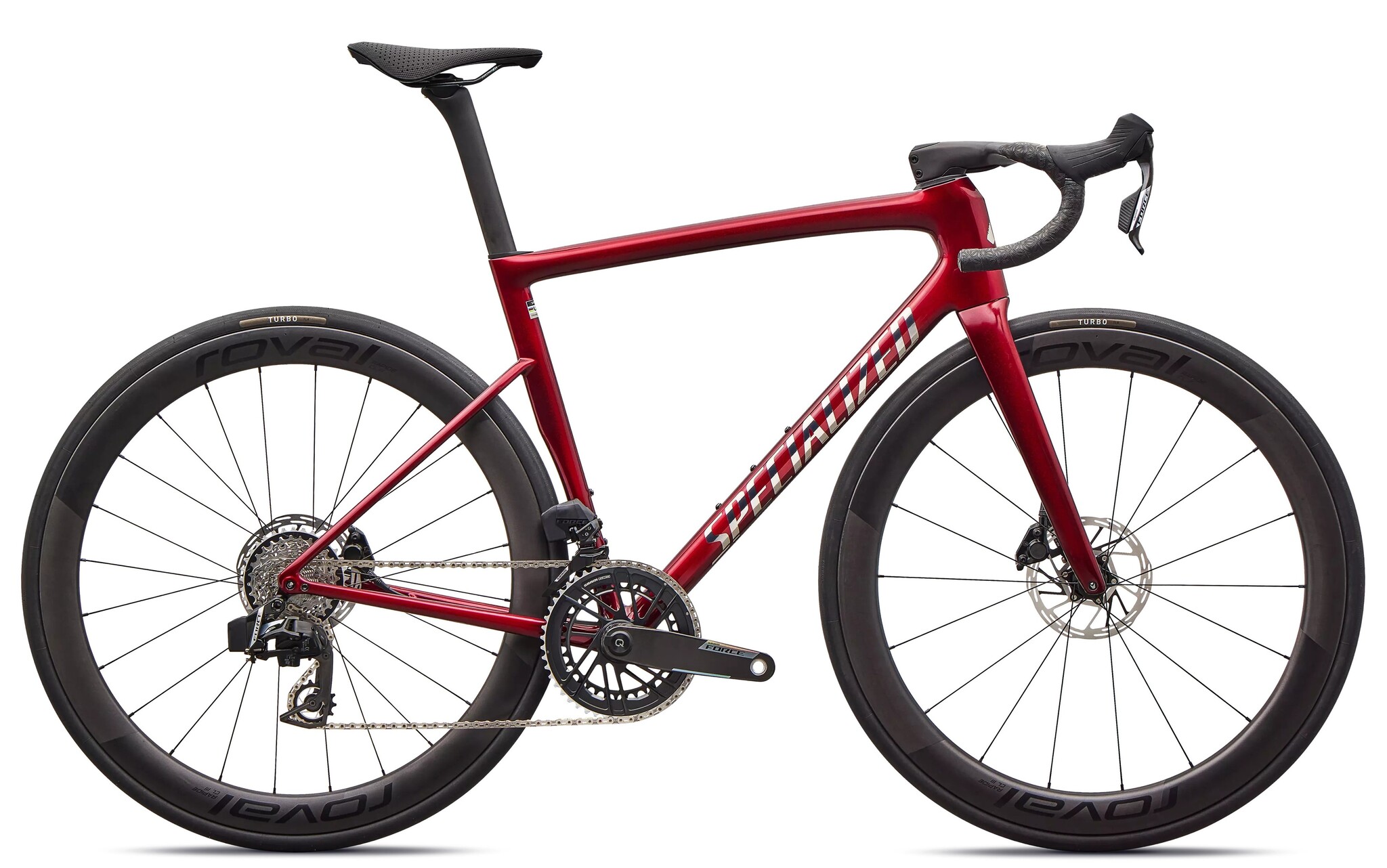 Désormais, le Tarmac SL8 Expert est équipé du nouveau groupe Force AXS de SRAM pour un poids réduit, un freinage sans effort et des changements de vitesse plus rapides et plus précis.