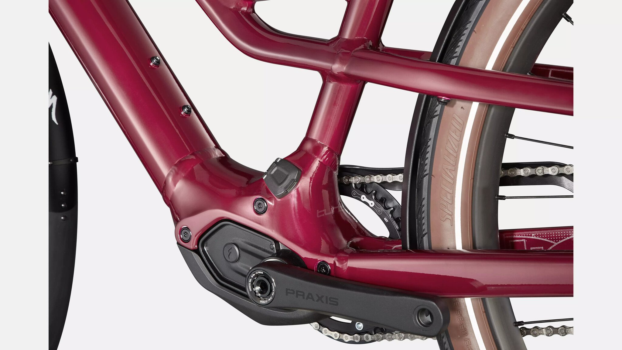 - Longue autonomie - Batterie Specialized 320 Wh entièrement intégrée dans le tube diagonal, compatible avec un prolongateur d'autonomie en option pour une autonomie maximale de 100 km ou 4,5 heures (mode éco) ou jusqu'à 150 km ou 6,75 heures avec le prolongateur d'autonomie (mode éco).