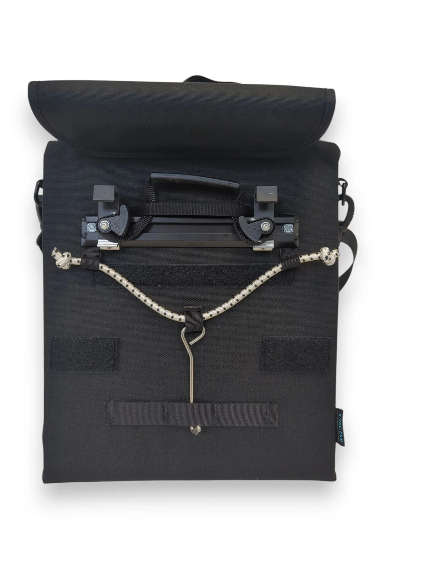 The Shopper is Aokel best option for commuting to the market. This roomy, foldable, and durable urban pannier features a drawstring sleeve that extends its already spacious 25-29L compartment. Built with tough Cordura 1000D or beautiful X-Pac fabric, HDPE plastic sheets, and aluminum rods, it includes the solid Cam-Lock attachment system for secure mounting. When not in use, it folds tight against your rack or in storage. Complete with two handles and a shoulder strap for comfortable carrying, plus an inner zippered pocket for quick wallet access.