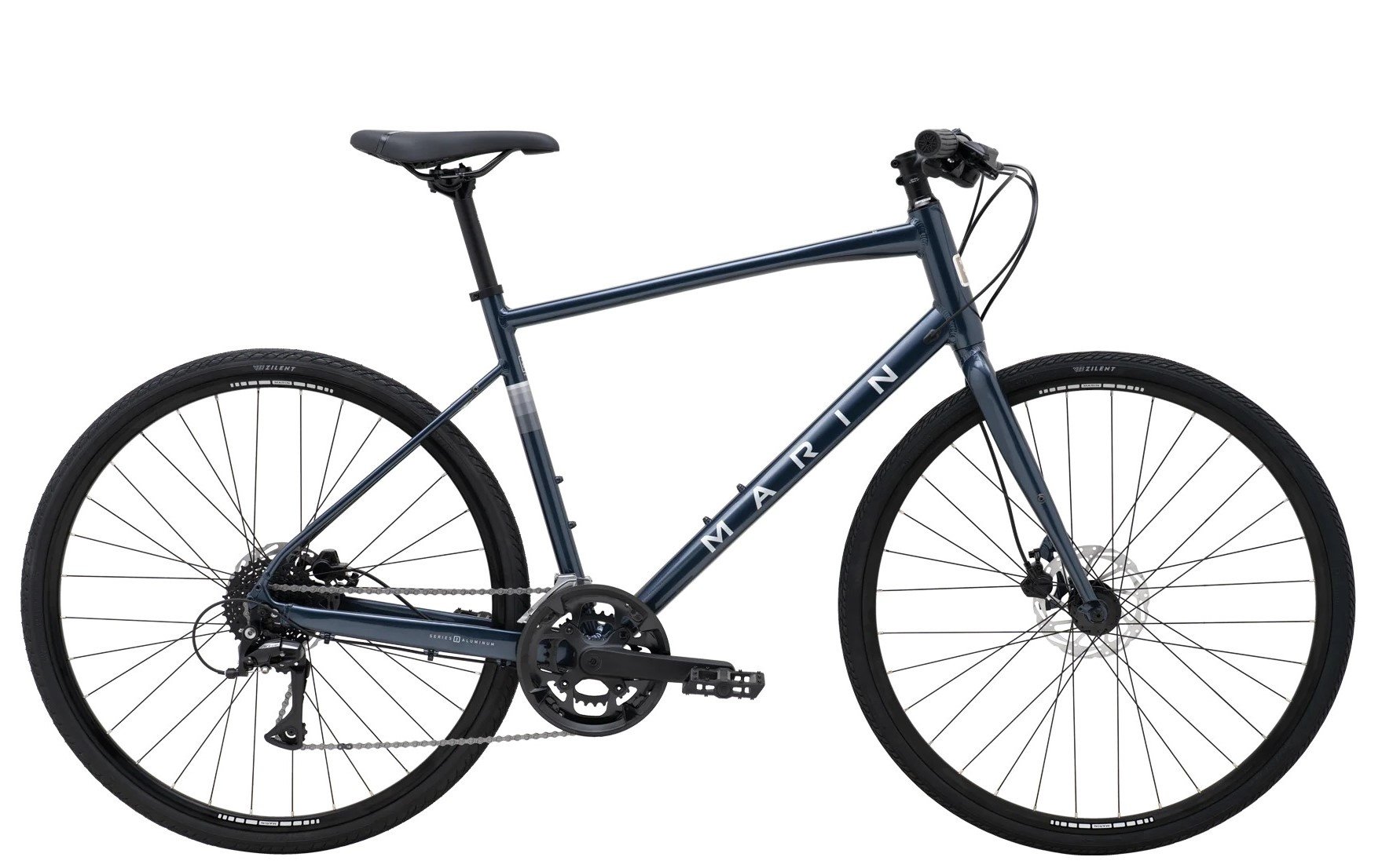 The Fairfax 2 is the mid-tier model in the Fairfax collection, with plenty of upgrades over the base model. It’s built around a fast and light Series 2 aluminum frame and aluminum straight-blade fork and comes with a Shimano 2x 8-speed Shimano drivetrain, Tektro hydraulic disc brakes, Vee Tire Co tires and plenty of reliable Marin components.