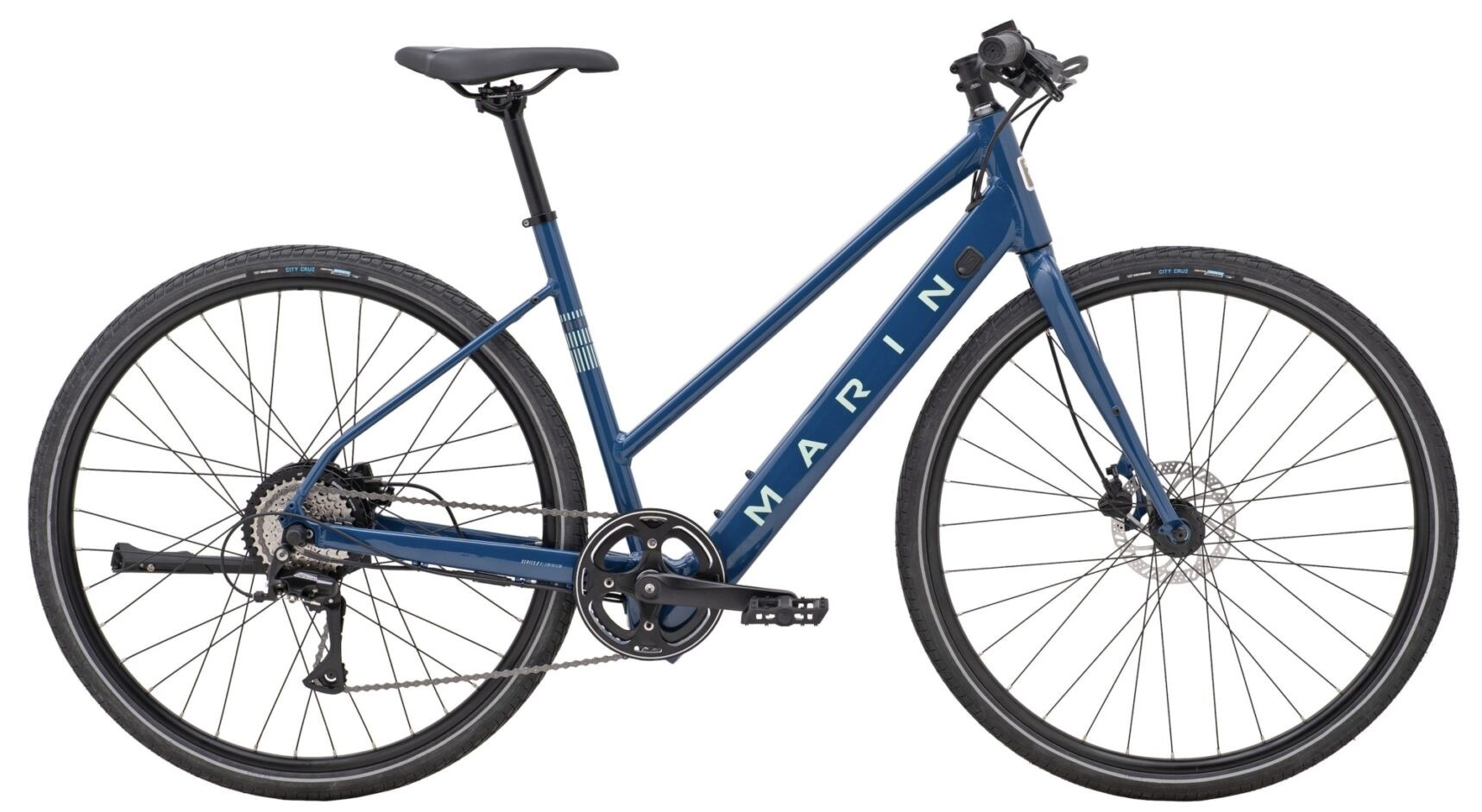 Marin critically acclaimed and best-selling Fairfax has gone electric. The all-new Fairfax E brings the power to scoot you along with 40Nm of torque from the rear hub, quietly and seamlessly adding a boost to your pedaling. The 340Wh battery is cleanly integrated into the Series 2 aluminum frame downtube, while a Shimano 8-speed Altus drivetrain provides plenty of gearing range. Finally, hydraulic disc brakes from Tektro allow for controlled and comfortable stopping power in all conditions..