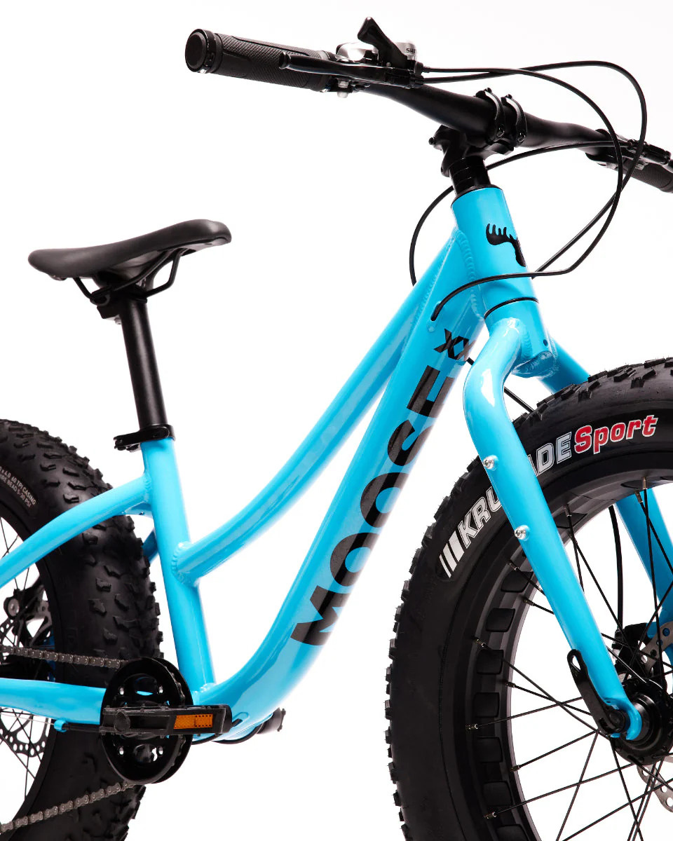 Moose Bicycle kids fat bike is an all-terrain bike designed to tackle snow, sand and muddy trails. With its oversized tires, it ensures excellent grip and optimal comfort. Lightweight but sturdy, it offers handling suitable for young riders looking for adventure. Ideal for exploring all types of terrain in all seasons!