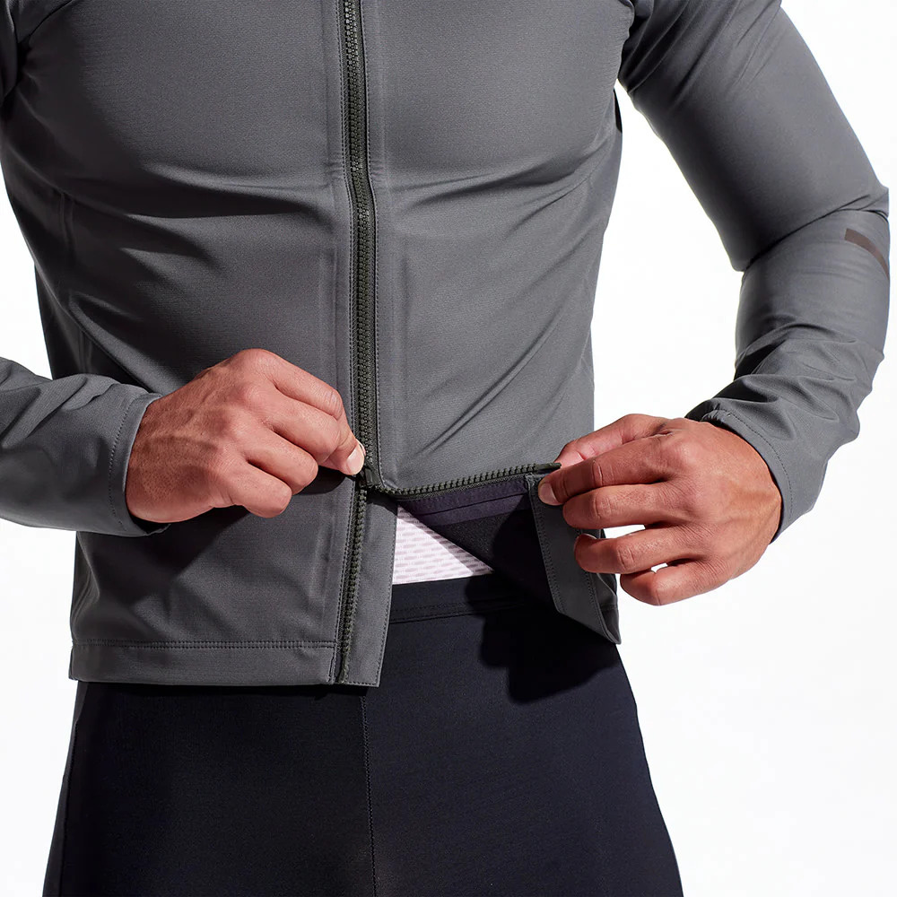 The articulated arms and long drop-tail hem ensure full coverage and mobility in the riding position, while stretch cuffs at the wrists seal out wind and water. A YKK two-way front zipper with internal storm flap lets you vent from the bottom and easily access rear jersey pockets mid-ride. And when the sun comes back out, the minimalist, no-pocket design packs down small enough to stash in a frame bag or large jersey pocket.