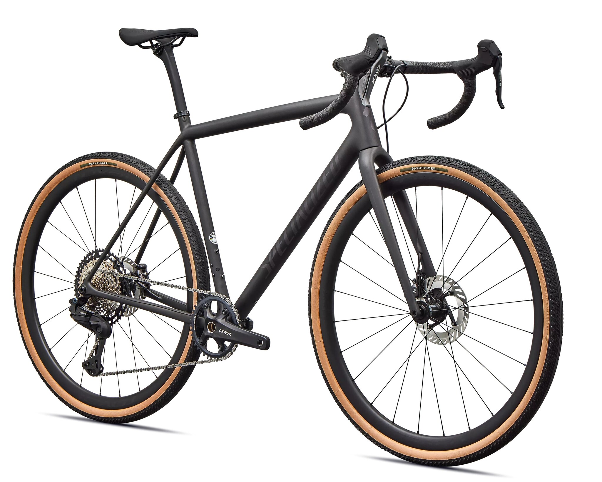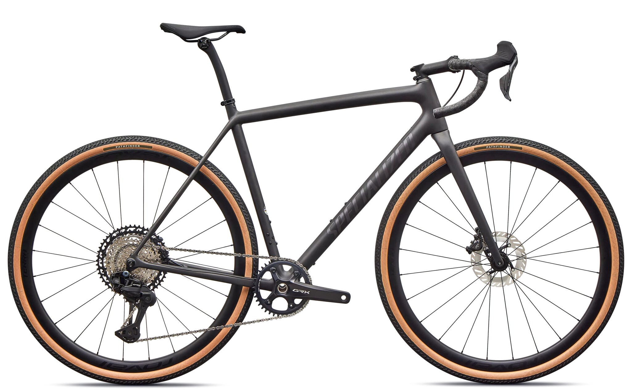 This Crux Expert comes spec'd with Shimano’s GRX Di2 1x12 800 Series hydraulic disc groupset with wireless shifting, lightweight and durable Roval Terra C Disc wheels, and 2Bliss Ready, 700x40mm Pathfinder tires that hookup over nasty terrain."